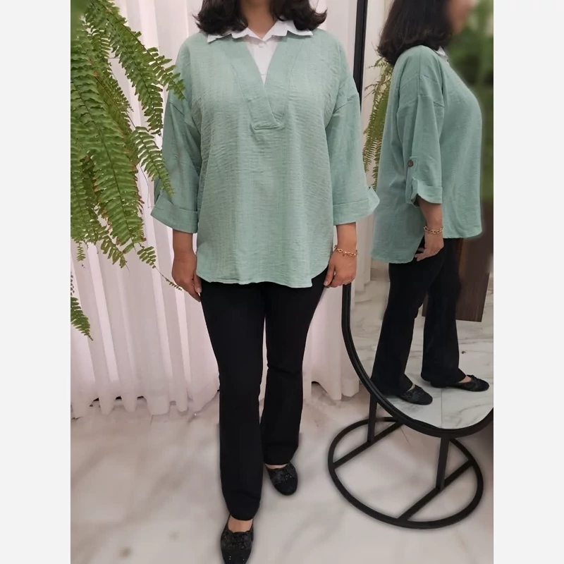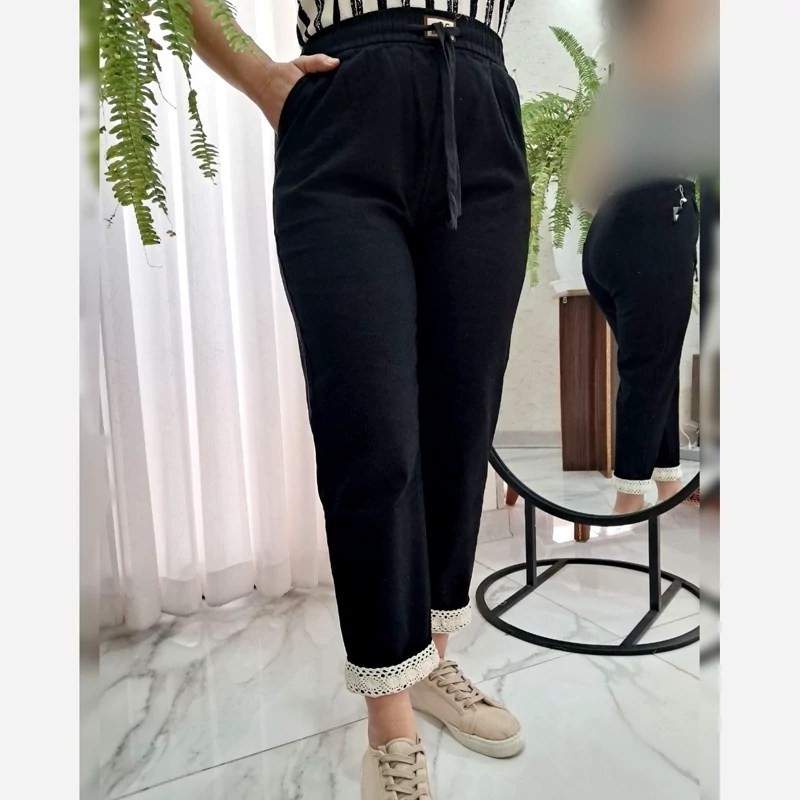 شلوار مام فیت کمر کشی کتان صابونی سایزبندی