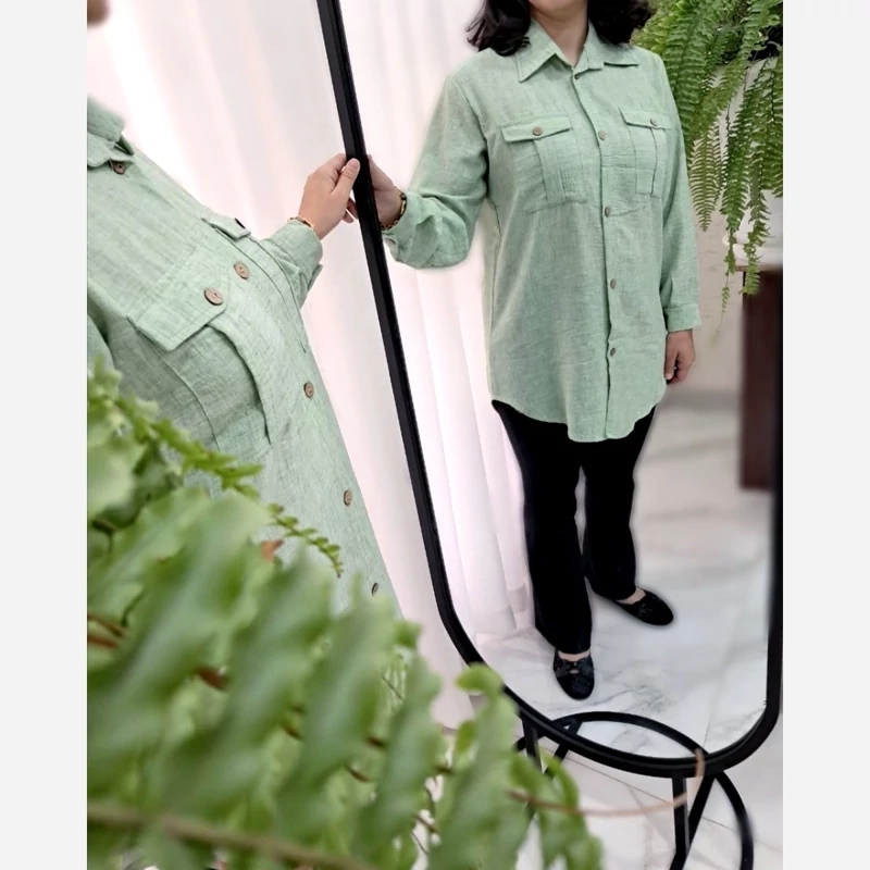 شلوار مام فیت کمر کشی کتان صابونی سایزبندی