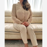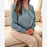 ماشالا این شومیز دلبرمون تو دلبری رو دست نداره😍 اصلا انگار خیلی خانومه😍 من که عاشق آستیناشم،البته ظاهرا شمام هستید🥰